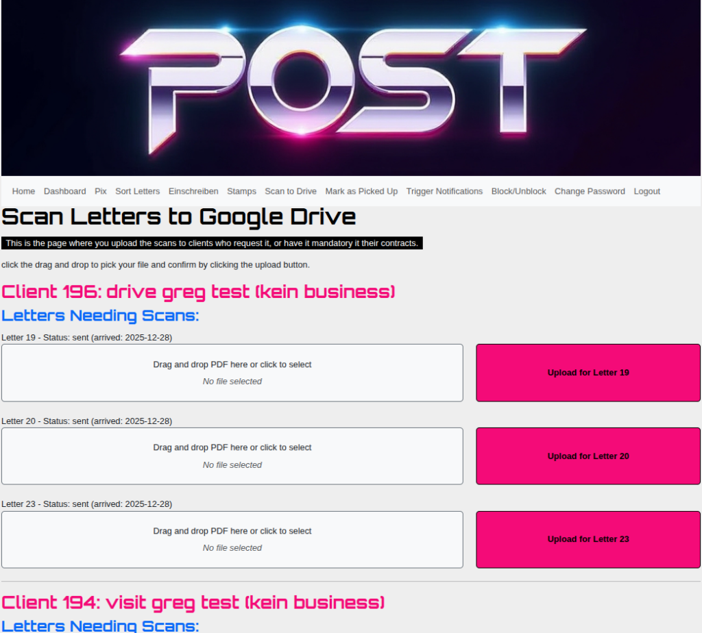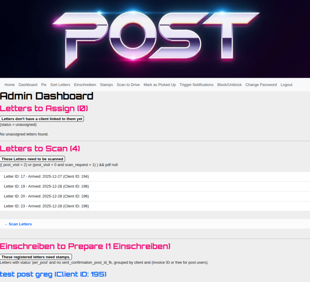 Dieses Projekt ist eine webbasierte Anwendung auf Basis von Python und Flask, die den gesamten Prozess der physischen Postverarbeitung automatisiert und digitalisiert.